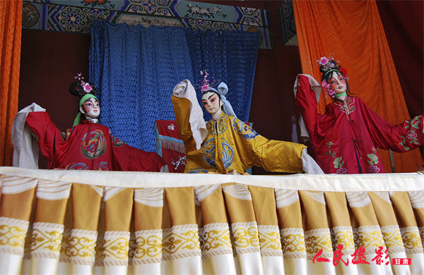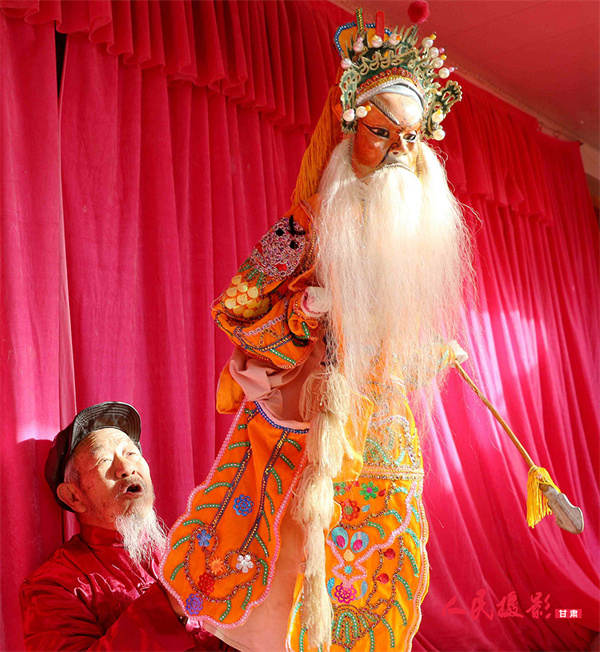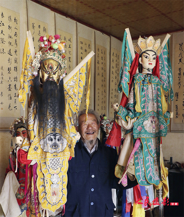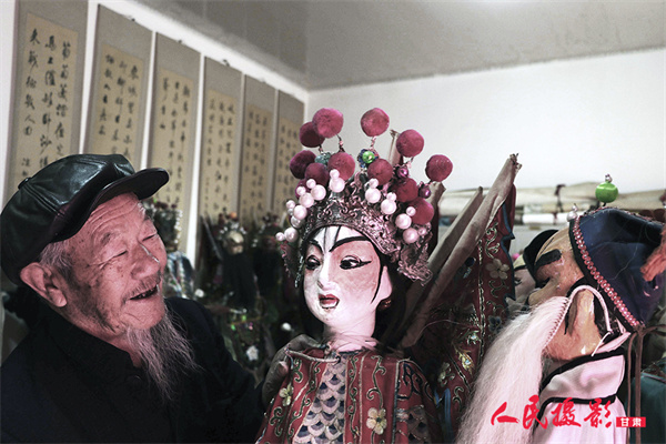 耳聪目明、谈吐幽默的马登岐一谈起皮影戏、木偶剧就喜上眉梢:“解放前,我们一沟一坝演,一年四季演,每场观众四五千人;有一年连续在外演了6个月,每场观众最少的也有四五百人。近些年,政府很重视文化,鼓励支持我们演出,所以一年要参加省、市区举办的各种非遗展演活动好几场。”