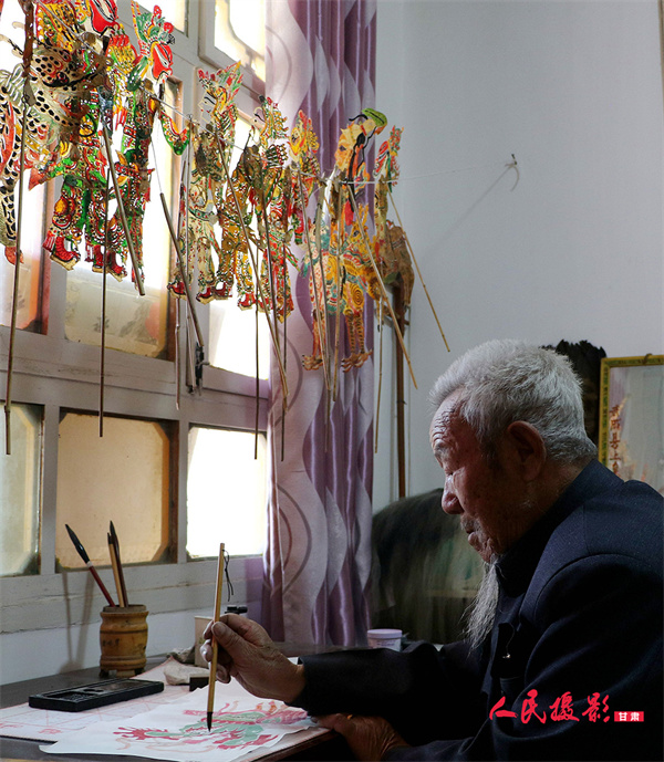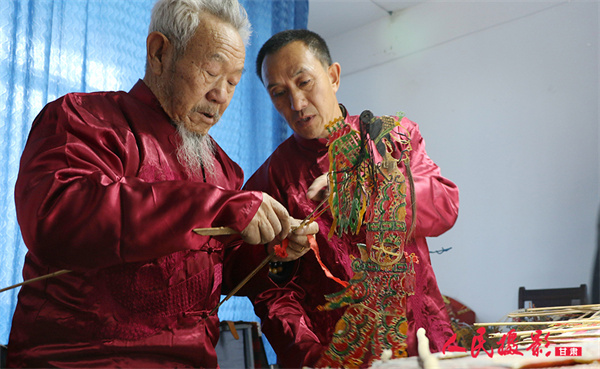 2017年5月10日,马登岐组装完成的皮影戏人物