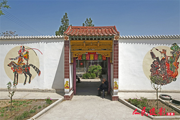 2023年5月13日,马登岐坐在大门口,守护着他文化大院里的皮影和木偶