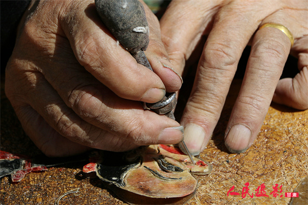 2023年5月13日,马登岐在老伴的守望中制作皮影