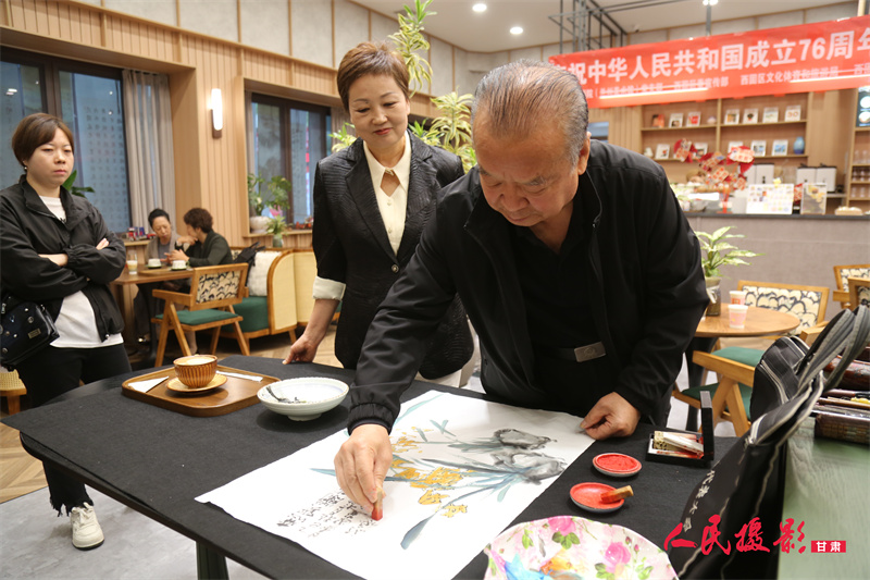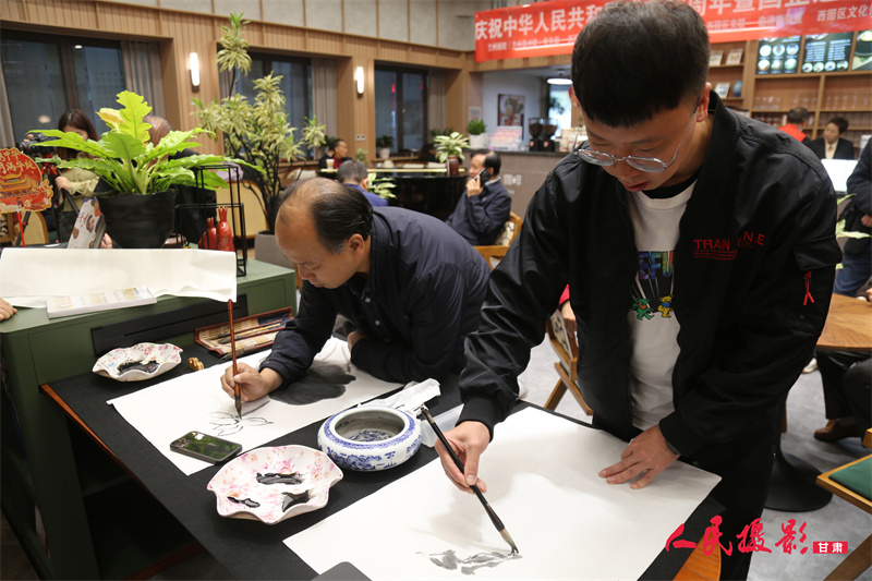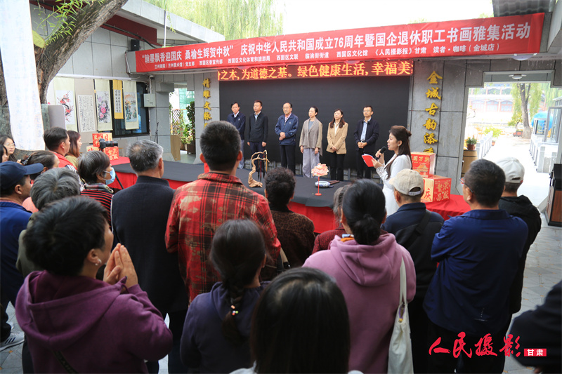 一边观赏书画作品、一边品尝咖啡,在其乐融融的书画雅集活动里畅笑开怀,这个十一更加有了味道!近日,由兰州画院(兰州美术馆)党支部携手西固区委宣传部、西固区文旅局、西固区文联、西固区文化馆、临洮街街道举办的“翰墨飘香迎国庆 桑榆生辉贺中秋”庆祝中华人民共和国成立76周年暨国企退休职工书画雅集活动,在金城公园读者咖啡举办。