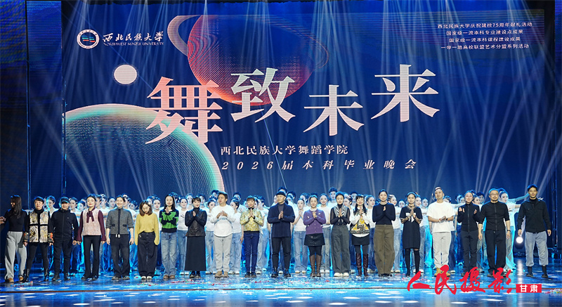 据悉,2026届本科生毕业晚会《舞至未来》暨就业供需推介会,是对舞蹈学院学科体系和结构建设以及高层次人才质量培养成果的一次集中展示,体现出了西北民族大学舞蹈学院课堂教学成果、师生的剧目排演与编创能力以及学生的舞台实践能力水平,同时也为毕业生搭建了进行自我展示的专业舞台。(摄影 徐晓君)